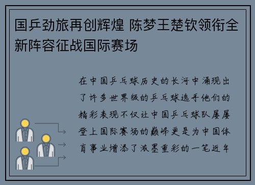 未来,中国体育必将在更多国际赛事中再度崭露头角,继续向世界展示自身的力量。相信通过不断的努力与突破,中国体育的辉煌成就将持续书写新的篇章。无论是运动员还是教练员,都将继续以不懈的奋斗,推动中国体育在世界体育舞台上不断前进。